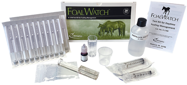 The FoalWatch test kit contains everything needed to perform 20 tests: